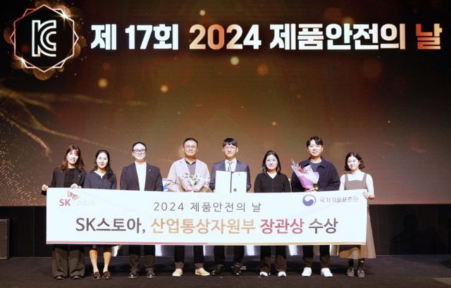 SK스토아는 지난 12일 서울 양재동 엘타워에서 진행된 '2024 제품안전의 날' 기념식에서 산업통상자원부 장관상을 수상했다. 지난 2020년 열린 같은 행사에서도 장관상을 수상한데 이어 2회째 수상한 것이다.