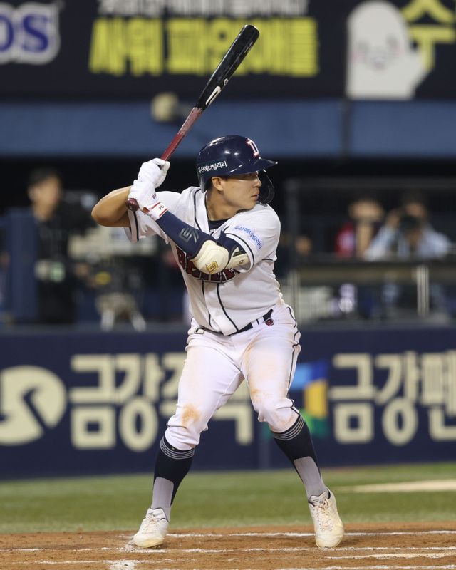 여동건은 올 시즌 프로 첫 해를 무사히 마무리했다. '신인왕 0순위' 김택연에 이어 2라운드로 입단한 그는 퓨처스(2군)리그 47경기에서 타율 0.279 1홈런 16타점 20득점 12도루를 기록했고, 9월엔 1군 공기도 맛 봤다. 1군 9경기 11타석에 들어서 타율 0.400(10타수 4안타)을 기록했고 도루도 3개를 쌓았다. 화려하진 않았지만, 차근차근 1년 차 선수의 숙제를 풀어갔다. 대타지만 포스트시즌 타석 데뷔전도 치렀다. 와일드카드 결정 1차전 9회 국가대표 마무리 박영현을 상대로 나서 3구 삼진. 다소 허무했지만 내일의 투지를 불사를 수 있는 마지막이었다.