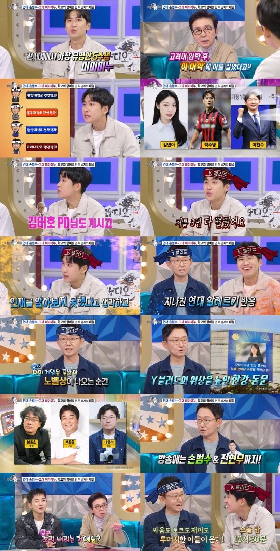 게다가 손범수는 "이미 게임은 끝났다"라며 최근 노벨 문학상을 수상한 연세대 출신 한강 작가를 언급한 것에 이어 "영화에는 봉준호, 요리하면 백종원, 예능에는 나영석 PD, 방송에는 손범수, 전현무까지”라고 ‘Y블러드’의 자부심을 자랑한다.