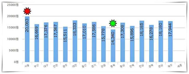 16. 충북 - 14,340원