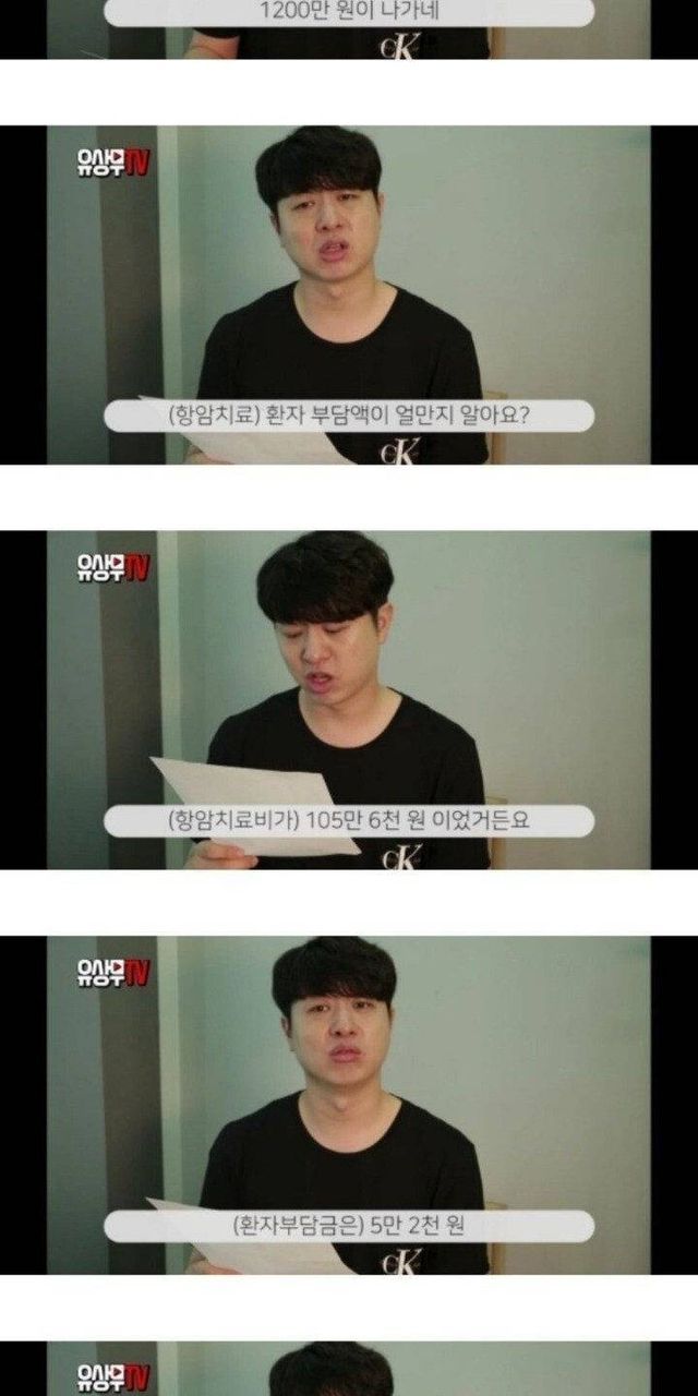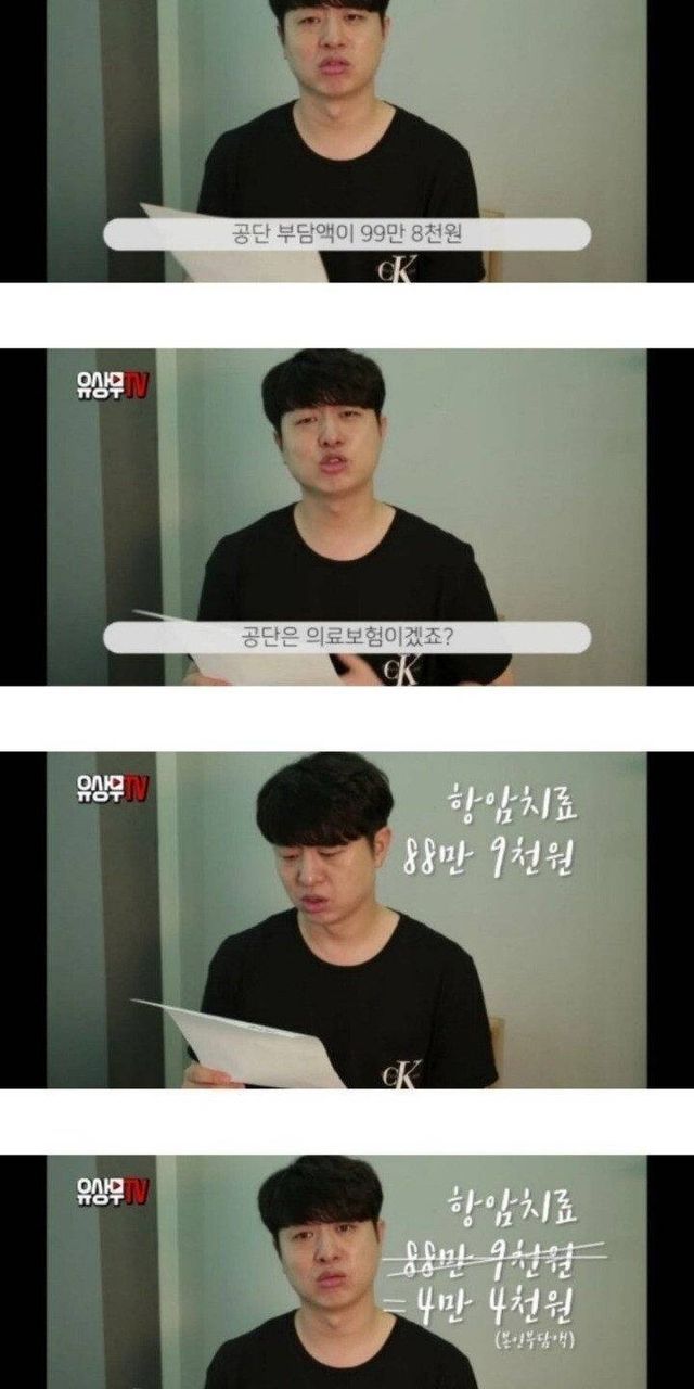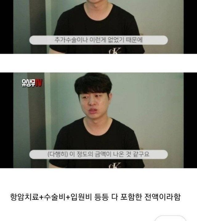 유상무가 공개한 암 치료 비용jpg..