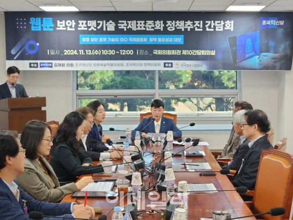 13일 서울 영등포구 여의도 국회의원회관에서 열린 ‘웹툰 보안 포맷기술 국제표준화 정책추진 간담회’에서 산학계 전문가들은 이같이 목소리를 높였다. 이날 행사는 김재원 조국혁신당 의원과 자당 문화예술특별위원회 및 정책위원회가 공동 주최했다.