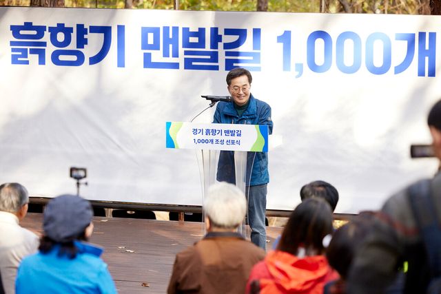 그러면서 “도민들의 건강을 위해 흙길 1천 개 만드는 사업을 하겠다고 선언한다. 경기도 읍면동 603개에 최소한 1개 이상씩 조성할 것”이라며 “도민 여러분이 걸으면서 몸도 튼튼해지고, 마음도 건강해져서 사회적 비용을 줄이는 효과까지 있을 것이라고 생각한다”고 말했다.