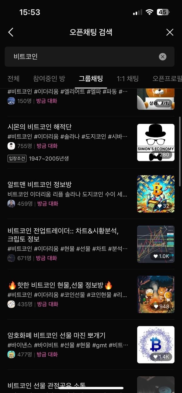▲ 비트코인 오픈채팅방 목록.