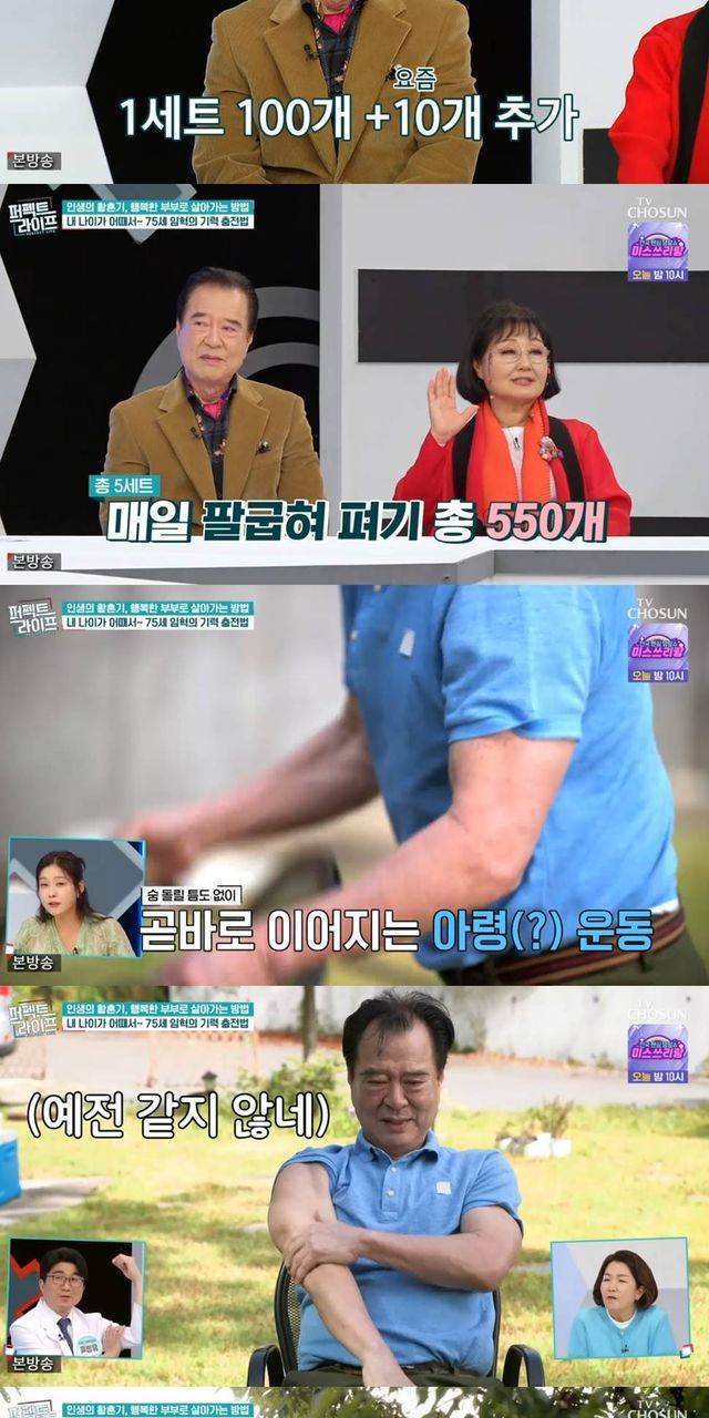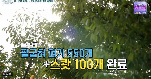 또한 20대 같은 팔근육을 자랑해 시선을 모았다. 스쾃 100개까지 끝낸 후 오전 운동을 마무리해 감탄을 자아냈다.