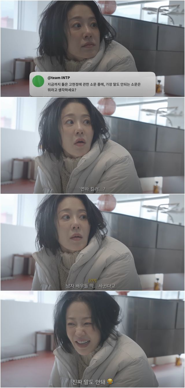 영상에서 고현정은 질문에 답하며 자신의 인생과 억울한 루머, 기억에 남는 선물 등에 대해 언급했다.