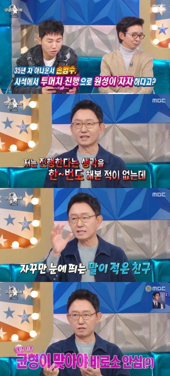 손범수는 "친구들이 여러 명이 있으면 토크가 균등하게 분배가 되지 않는다. 상대적으로 말이 적은 친구가 안쓰럽게 보인다. 그래서 자연스럽게 말이 없는 친구에게 말을 걸어서 토크 균형을 맞춘다. 어떤 한 사람이 소외되어 있으면 제가 불편하다"고 말했다.