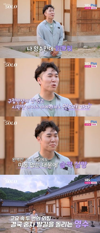 영수는 완벽한 코스 어필에도 고요 속 두번의 외침 끝, 그의 1픽인 현숙 포함 아무도 등장하지 않아 결국 혼자 발길을 돌렸다. 이로써 고독 정식을 먹게 된 영수는 허탈한 웃음을 감추지 못했다.