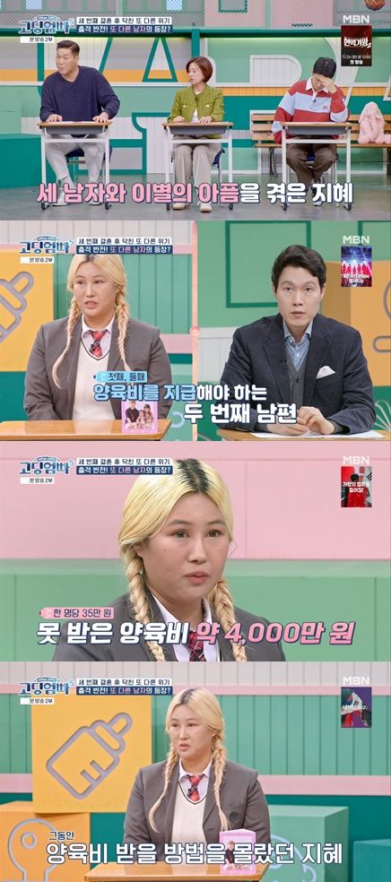 최지혜는 이혼한 남편들에게서 아이들 양육비를 받고 있는지에 관해 "첫째와 둘째는 두 번째 남편이 양육비를 지급해야 한다. 한 명당 35만 원씩이었는데, 지금까지 약 4,000만 원 정도를 못 받은 상태다"라고 전했다.