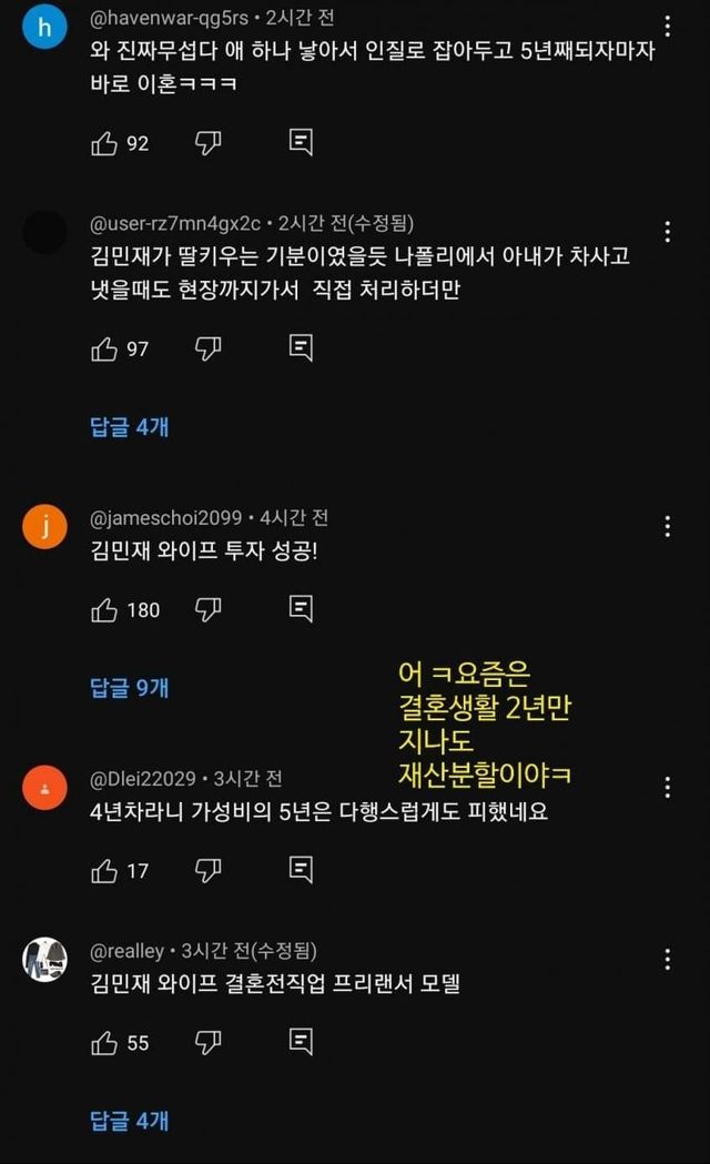 밝혀진 이혼 사유도 없지 않음...?