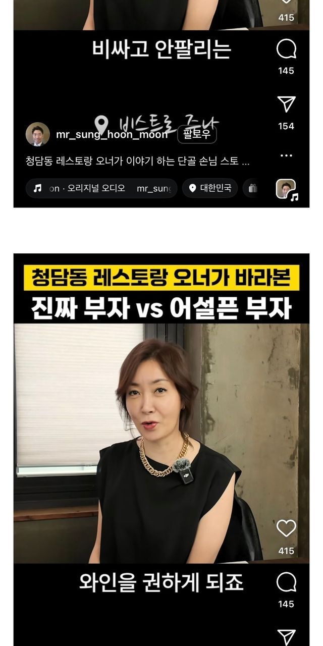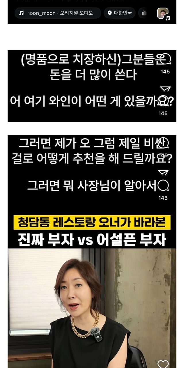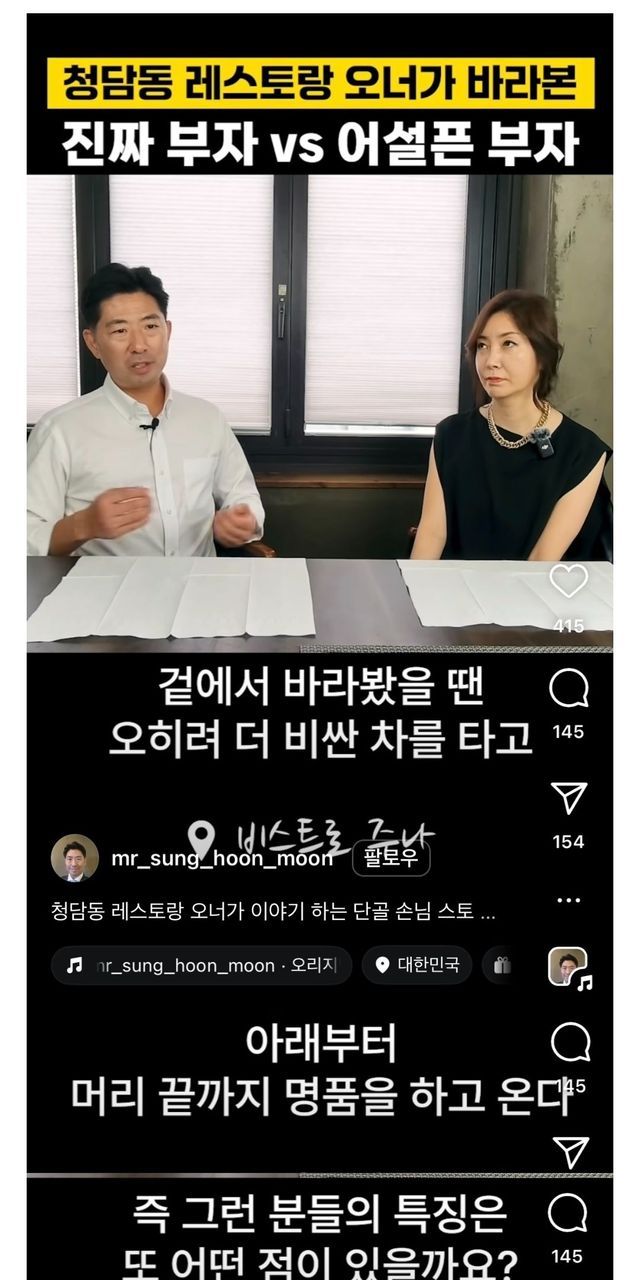 청담동 레스토랑에 비싼차에 명품을 하고 갔을 때 받는 대우.