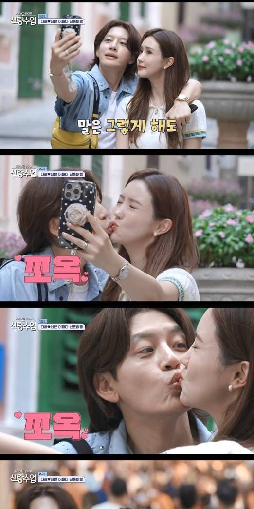 이다해는 "너무 예쁘다. 여기 앉아서 사진 한 장만 찍자"고 했고, 세븐은 "또?"라며 반응해 웃음을 안겼다. 함께 사진을 찍던 이들은 입술 뽀뽀를 이어가며 달달한 분위기를 풍겼다.