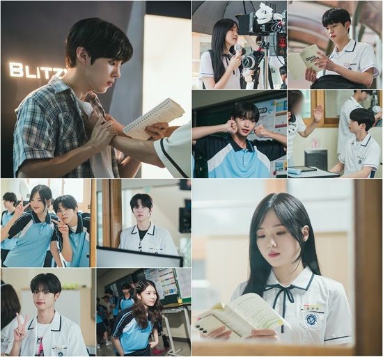먼저 김우석(강우빈 역)과 강나언(김지은 역)은 본격적인 촬영에 앞서 대본을 꼼꼼히 익히는 등 프로페셔널한 면모로 눈길을 끌었다. 김우석은 상대역과 꼼꼼하게 동선을 체크했고, 강나언은 촬영이 끝난 뒤 곧바로 모니터링하며 장면의 완성도를 높이기 위해 다방면으로 연구했다. 이어 두 사람은 함께 카메라를 바라보며 브이를 짓는 등 장난 가득한 면모로 보는 이들의 입꼬리를 자동 승천시켰다.
