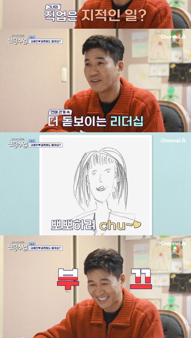 13일 방송한 채널A '신랑수업'에는 11살 연하 여자친구를 고백, 공개 열애 중인 김종민의 심리 상담기가 공개됐다.