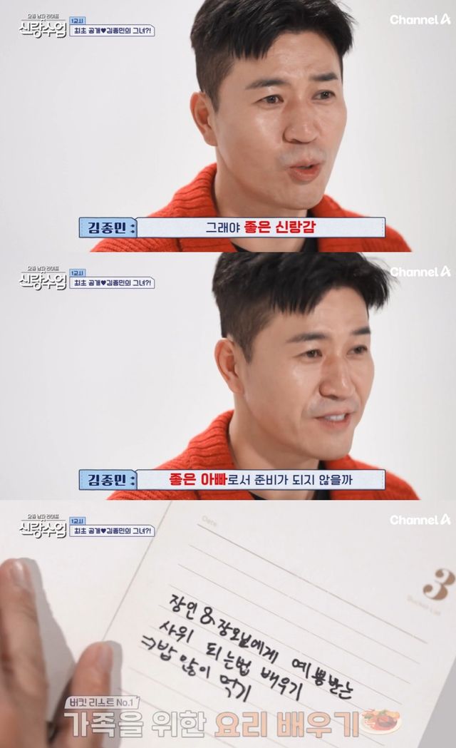 처음으로 신랑 수업에 돌입한 김종민은 "사실 이걸 쓰기 시작했다. 결혼 전 버킷 리스트를 썼는데 하나씩 배워보고 싶다"며 자신이 결혼 전 해야할 일을 공개, "좋은 신랑, 좋은 아빠가 되지 않을까"라며 미래를 생각하는 면모를 보였다.