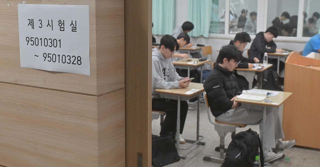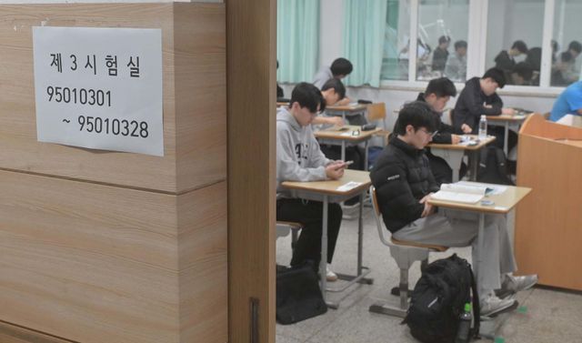 2025학년도 대학수학능력시험날인 14일 오전 제주도교육청 제95지구 제1시험장인 남녕고등학교에서 수험생들이 시험을 앞두고 마지막 정리를 하며 시험 준비를 하고 있다. / 뉴스1(제주도사진기자회)