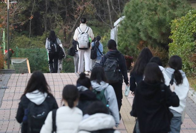 기사 이해를 돕기 위한 자료 사진. 2025학년도 대학수학능력시험일인 14일 오전 경기도교육청 제44지구 제7시험장인 화성시 나루고등학교로 수험생들이 입실을 하고 있다 / 뉴스1