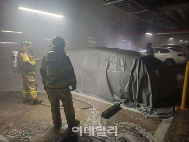 선발대가 도착했을 당시 배터리가 탑재된 차량 아래쪽에서 스파크가 튀고 연기가 난 것으로 알려졌다. 화재 진압에 나선 소방당국은 화재 지점에 지속적으로 물을 뿌려 배터리 온도를 낮추고 아파트에 비치된 질식소화포를 덮어 연소를 차단했다. 소방당국은 불이 난 차량을 소방서로 이동시켜 정확한 화재 원인 등을 조사할 예정이다.