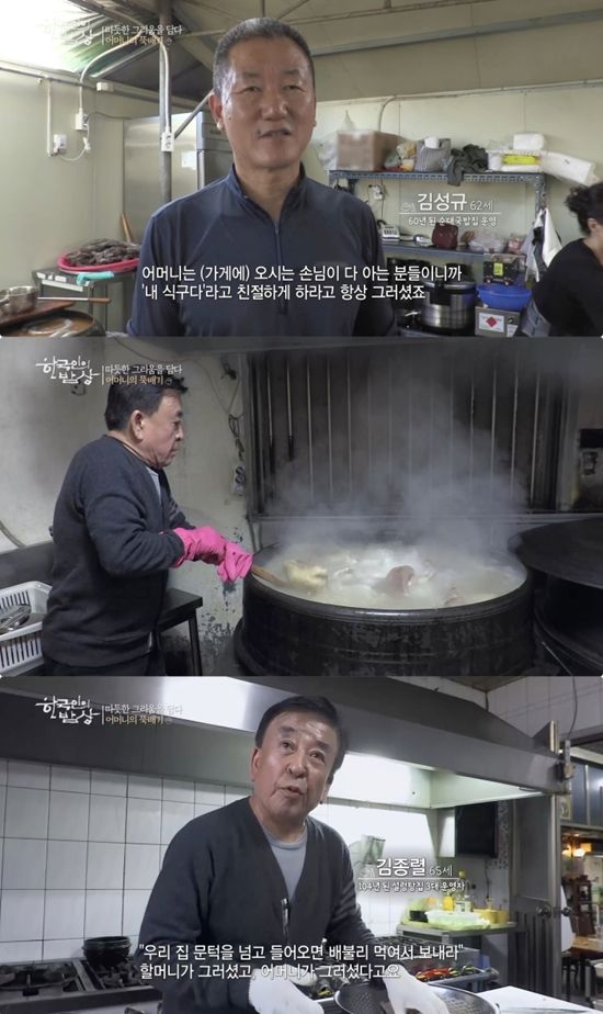 특히 모두 가난하고 어려웠던 시절 “손님들 배고프지 않게 넉넉하게 담아라”, “우리집 문턱을 넘어 들어오면 배불리 먹여서 보내라”라며 뚝배기 가득 담아낸 어머니의 넉넉한 인정은 그들이 세상을 떠난 뒤에도 자식들에게 대물림되고 있다고 해 감동을 더한다.