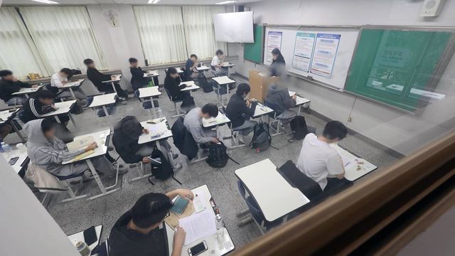 기사와 무관. 2025학년도 대학수학능력시험 대비 전국연합학력평가가 시행된 11일 오전 서울 광진구 아차산로 서울광남고등학교에서 3학년 학생이 1교시 국어영역 시험을 기다리고 있다 / 뉴스1