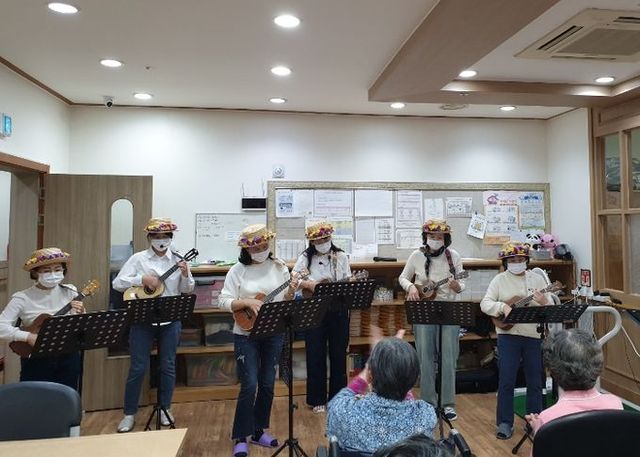 이날 공연에는 우쿨렐레 수강생들 중 ‘신나렐레’라는 동아리팀의 수강생 7명이 참여하여 총 3곡을 연주했다. 아름다운 우쿨렐레 선율은 가을의 정취를 더하며, 어르신들에게 행복한 시간을 선사했다. 수강생들은 공연 준비 과정에서 실력을 쌓을 수 있었고, 봉사의 기쁨도 함께 느낄 수 있는 뜻깊은 시간을 보냈다.