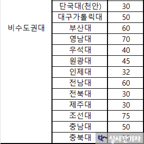 수도권으로 확대해도 850명중 여대할당 321명으로 비율 38퍼센트
