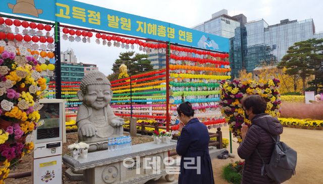 수능 당일 수험생 가족들의 간절함이 담긴 불빛이 절과 성당 등을 밝혔다. 이날 오전 9시께 조계사는 수험생을 위해 기도하는 학부모 50여명으로 붐볐다. 이들은 ‘수능 대박 발원’ ‘대학 입시 우수 합격’ 등 문구가 붙은 연등을 달고 두 손을 모아 합장했다.