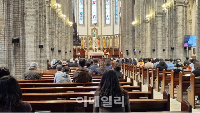 같은 시각 서울시 중구 명동성당에도 학부모들의 발걸음이 이어졌다. 이날 오전 10시 미사가 시작됐다. 이윽고 학생들의 이름이 불리자 학부모들은 더욱 긴장한 모습을 보이며 기도에 힘썼다.