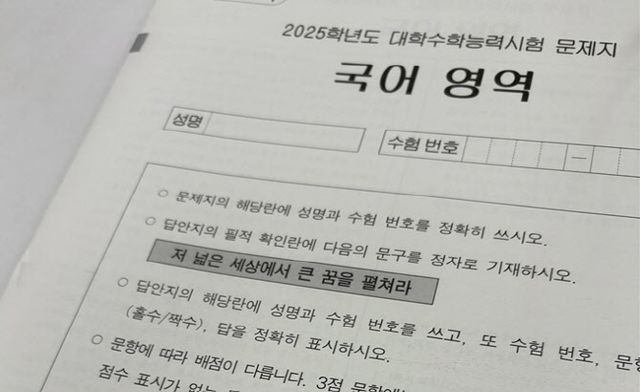 14일 오전 치러진 수능 1교시 국어영역 시험지에는 이같은 문구가 제시됐다. 이는 곽 시인의 시 ‘하나뿐인 예쁜 딸아’에 나오는 구절이다.