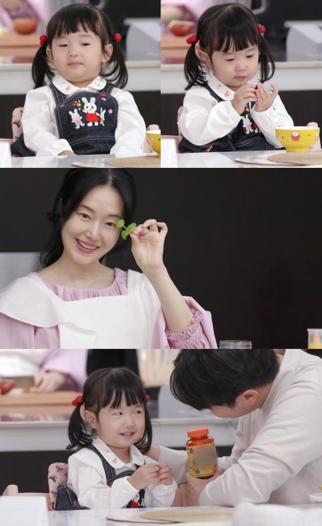 이정현 남편은 서아가 가장 좋아하는 비타민 젤리 하나를 그릇에 놓아주고, 5분 동안 먹지 않고 아빠가 올 때까지 잘 기다리면 하나를 더 주겠다고 설명하며 자리를 피했다.