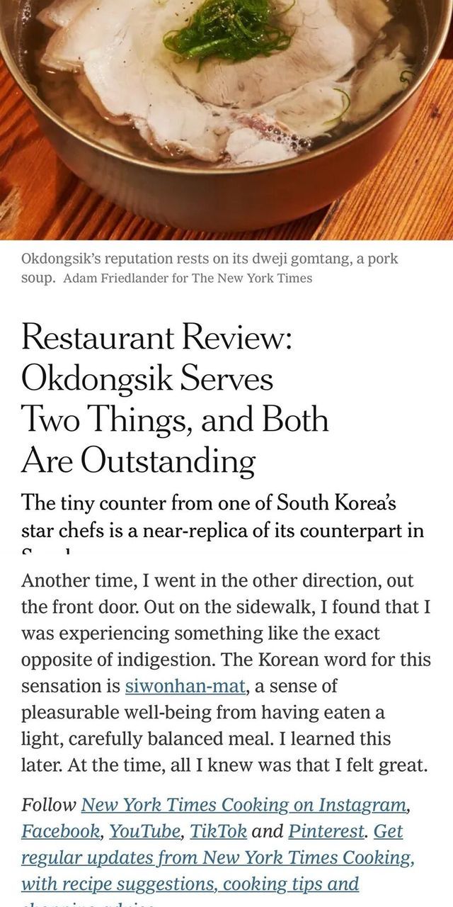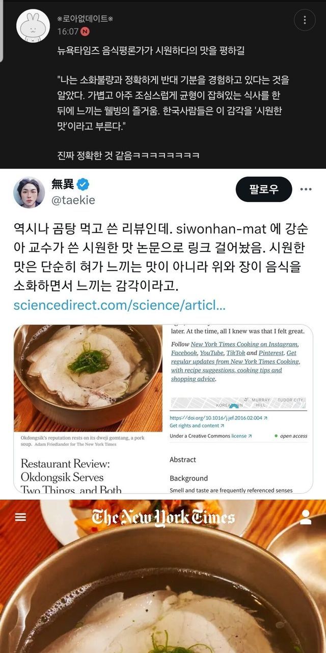 뉴욕타임즈 음식 평론가가 곰탕을 먹고 평가하는 한국의 시원한 맛