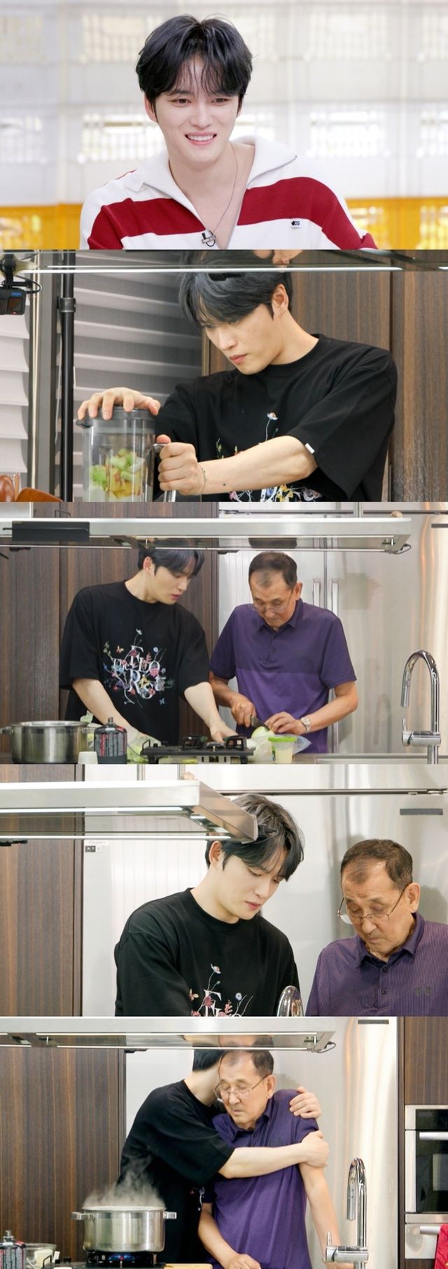 이날 공개되는 VCR 속 김재중은 어머니와 대화를 나누던 중 어머니의 고충을 들었다. 평소 고기 아니면 잘 안 드시는 아버지의 식습관 때문에 어머니가 식사 준비가 고되다는 것. 어머니의 이야기를 들은 김재중은 아버지에게 고기 요리를 가르쳐드릴 테니 함께 해보자 제안했다. 팔십 평생 요리와는 담쌓고 살아온 아버지가 과연 수락할 것인가 궁금증이 모아진 가운데 아버지는 흔쾌히 좋다 하며 “사실 재중이가 요리하는 걸 보면서 나도 요리 학원이라도 다녀야 하나 했다”고 속마음을 고백해 모두를 놀라게 했다. 아들이 요리하는 모습을 보며 멋있다고 생각했다는 것.