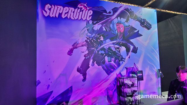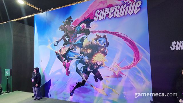 ▲ 시연 중인 유저들 뒤에 위치한 슈퍼바이브 캐릭터 (사진: 게임메카 촬영)