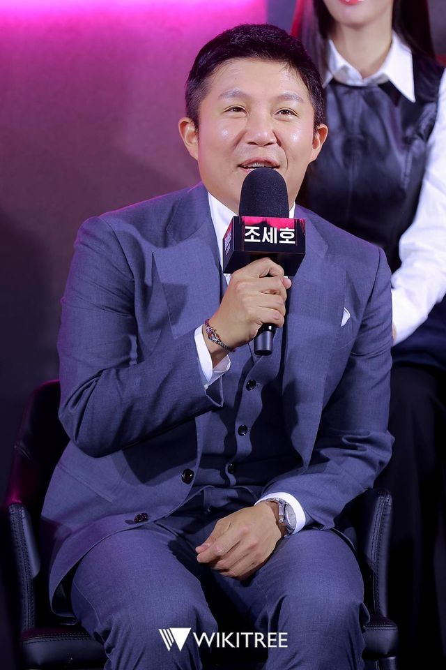 14일 오후 CGV 용산아이파크몰에서 넷플릭스 예능 '좀비버스: 뉴 블러드' 제작발표회가 진행됐다. 제작발표회에 참석한 조세호가 질문에 답변하고 있다.