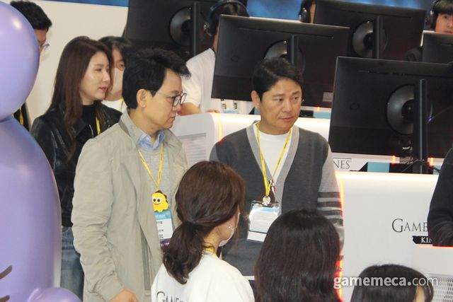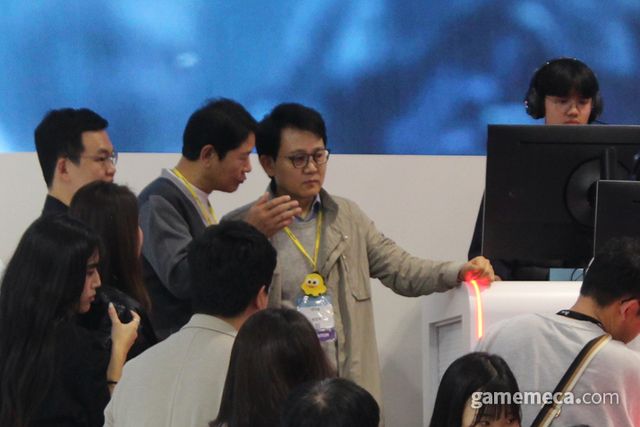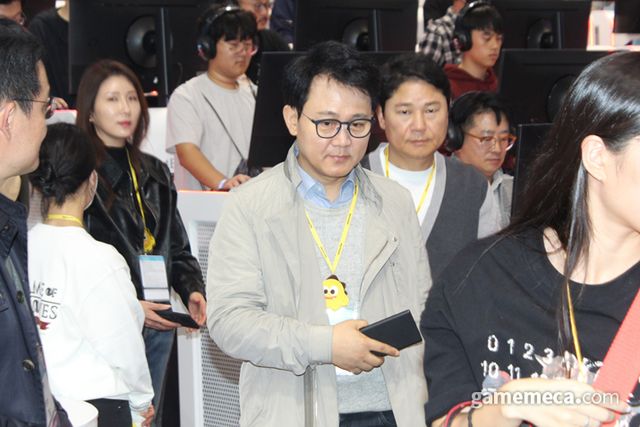 ▲ 넷마블 부스를 탐방 중인 방준혁 의장 (사진: 게임메카 촬영)