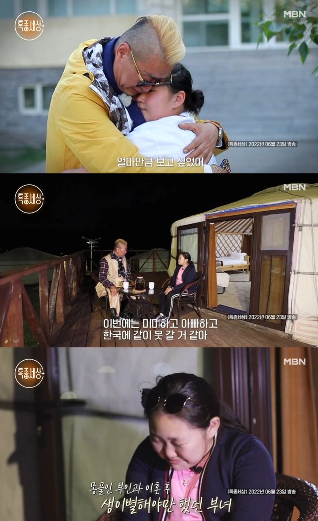 당시 몽골에서 만나 부둥켜안은 부녀. 당시 유퉁은 "이번엔 미미하고 아빠하고 한국에 같이 못 갈 거 같다"고 고백했다.