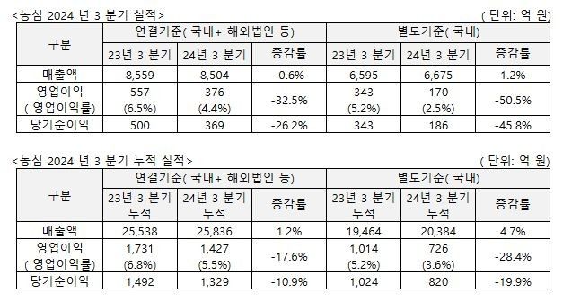 농심 2024년 3분기 실적표. ⓒ 농심