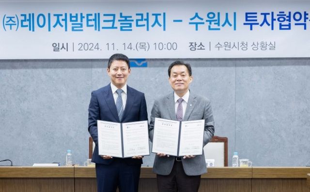 수원시와 ㈜레이저발테크놀러지는 14일 시청 상황실에서 협약을 체결하고, 협력을 약속했다. 협약식에는 이재준 수원시장, ㈜레이저발테크놀러지 앤드류김 대표 등이 참석했다.