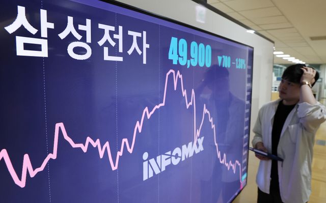 삼성전자 주가는 14일 5거래일 연속 하락하면서 4만9900원에 장을 마감했다. 전날보다 700원(1.38%) 떨어지며 5만원 저지선이 뚫렸다. 이는 지난 2020년 6월 15일 종가 4만9900원을 기록한 후 4년5개월 만에 최저가다.