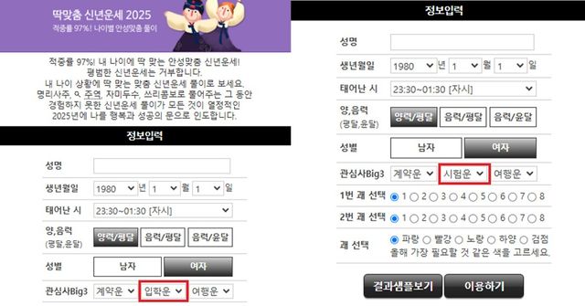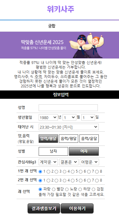 위키사주 딱맞춤 신년운세 2025 화면 / 위키사주