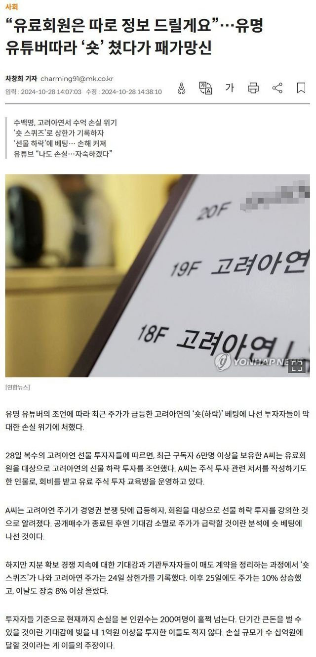 유료회원 대상으로 고려아연 선물 숏 리딩했다가