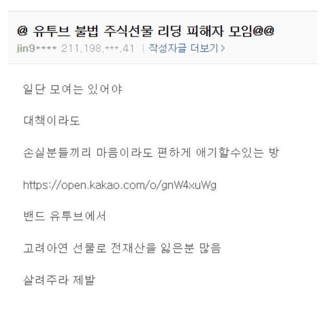 피해자모임(?)은 해당 유튜버한테 소송 고려중이라고 함 ㄷㄷㄷ