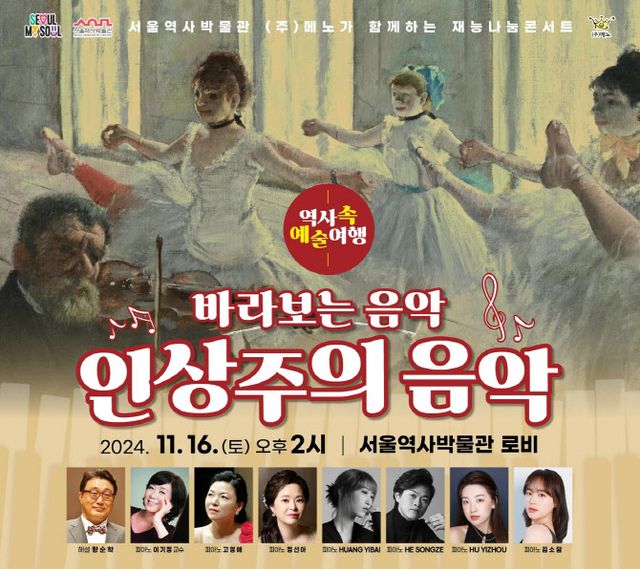 2024 기획테마 ‘역사 속 예술여행’의 다섯 번째 무대다. ‘바라보는 음악, 인상주의 음악!’이라는 주제로 드뷔시, 라벨 등 인상주의 피아노 명곡을 선보인다.