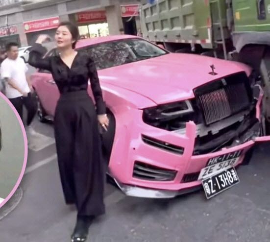 14일 홍콩 사우스차이나모닝포스트(SCMP)에 따르면 최근 중국 광둥성 광저우시의 도로에서 화물트럭이 분홍색 롤스로이스 차량을 들이받는 사고가 발생했다.