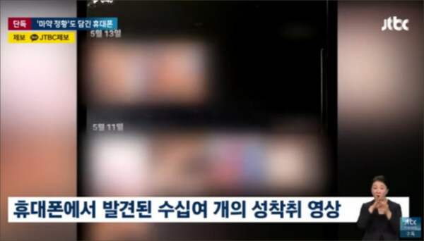 그 가운데 그의 휴대전화에 미성년자로 추정되는 여성들의 불법 촬영 영상 수십여개가 발견됐다고 13일 JTBC가 보도했다.