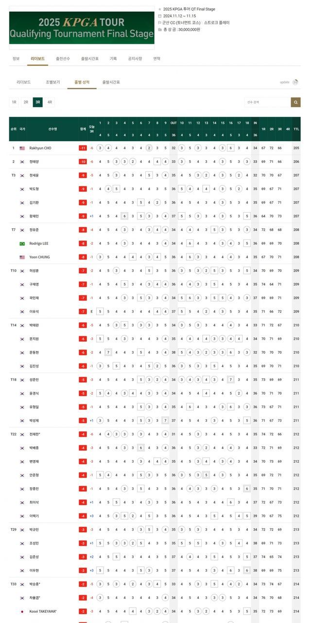 ▲2025 KPGA 투어 퀄리파잉 토너먼트 3라운드 순위