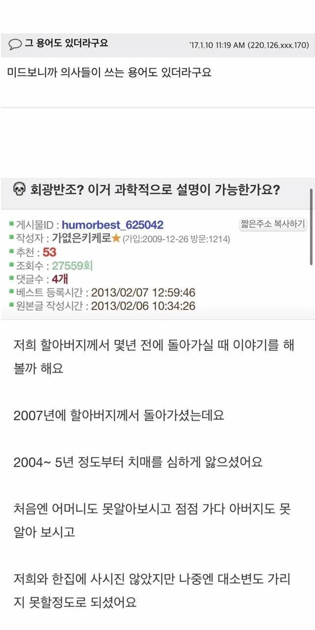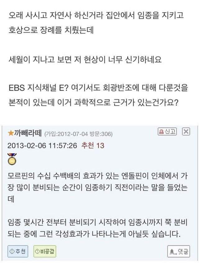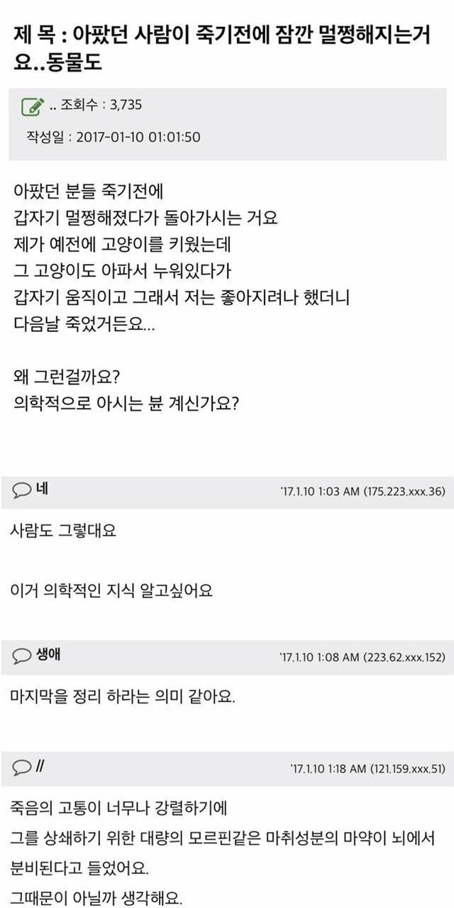 아팠던 사람이나 동물이 죽기전 정신 멀쩡해지는 현상