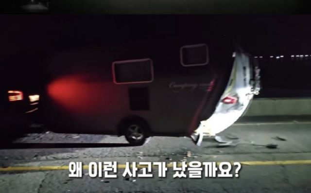 A씨는 당시 2차선 도로를 달리던 중 검은색 무광 카라반과 충돌했다. 당시 카라반 뒤쪽에는 반사 스티커나 미등도 켜지지 않은 채 차선을 물고 세워져 있었고 그 안에는 두 사람이 잠을 자고 있었다.