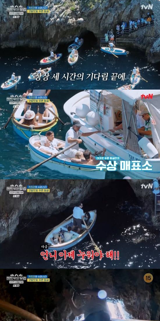 또 멤버들은 푸른 동굴에 들어가는 배를 타기 위해 줄을 섰고, 세 시간 동안 기다려야 했다. 멤버들은 푸른 동굴에 들어가는 배에 탑승해 뱃사공이 안내하는 대로 수상 매표소에서 입장권을 구입했다.