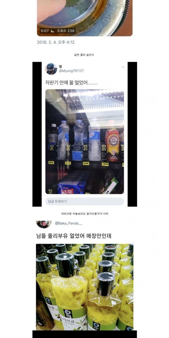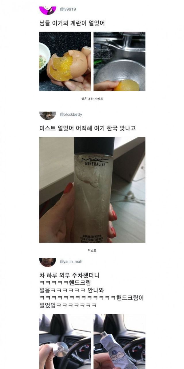 한국 역대급 한파때 유행했던 '얼었어' 시리즈